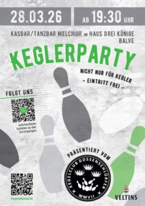 Keglerparty: Samstag, den 28. März 2026 – Tanzbar Melchior und Kasbar